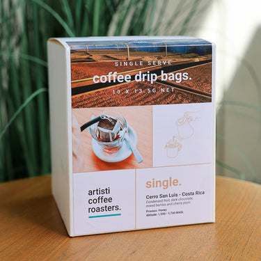 Immerse yourself in a world where the fusion of convenience and extraordinary flavour is an art form. Introducing Artisti's captivating "Coffee Drip Bags" collection, where savoring your beloved brew has never been more effortless.