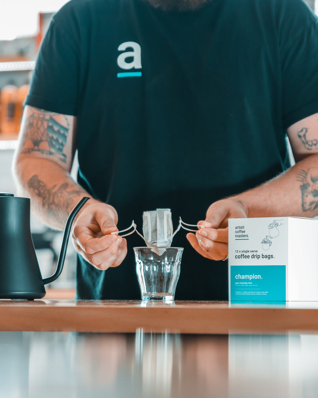 The coffee drip bag is the easiest and quickest way to brew your favourite coffee no matter where you are. You simply open the bag, place it over your cup and pour hot water through the single serve drip filter bag.