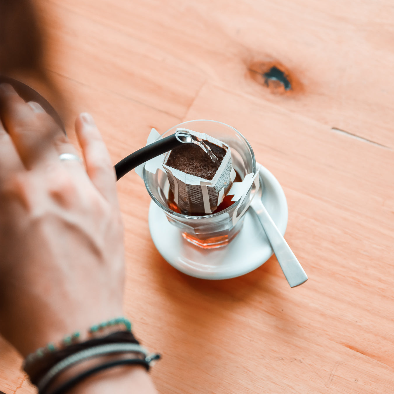 The coffee drip bag is the easiest and quickest way to brew your favourite coffee no matter where you are. You simply open the bag, place it over your cup and pour hot water through the single serve drip filter bag.